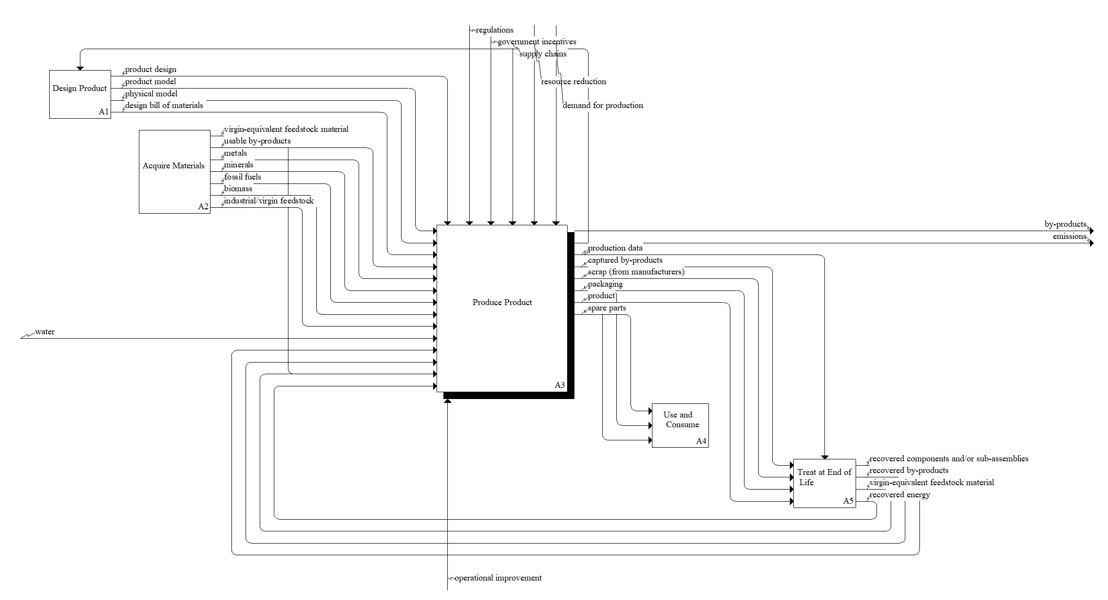 This activity is fully described. Click a decomposition, activity, or input/output/control/mechanism for descriptions and examples that are relevant for producing (i.e., manufacturing) in a circular economy..