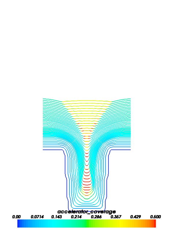 This input file is a demonstration of the use of FiPy for modeling copper superfill with leveler and accelerator additives. The material properties and experimental parameters used are roughly those that have been previously published [28].