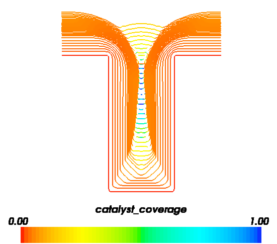 >>> runSimpleTrenchSystem(numberOfSteps=2, catalystCoverage=0.1, displayViewers=False)