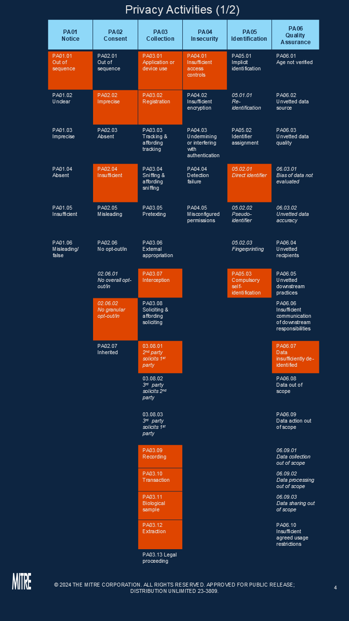 PANOPTIC Privacy Activities Mapping for Research Use Case#