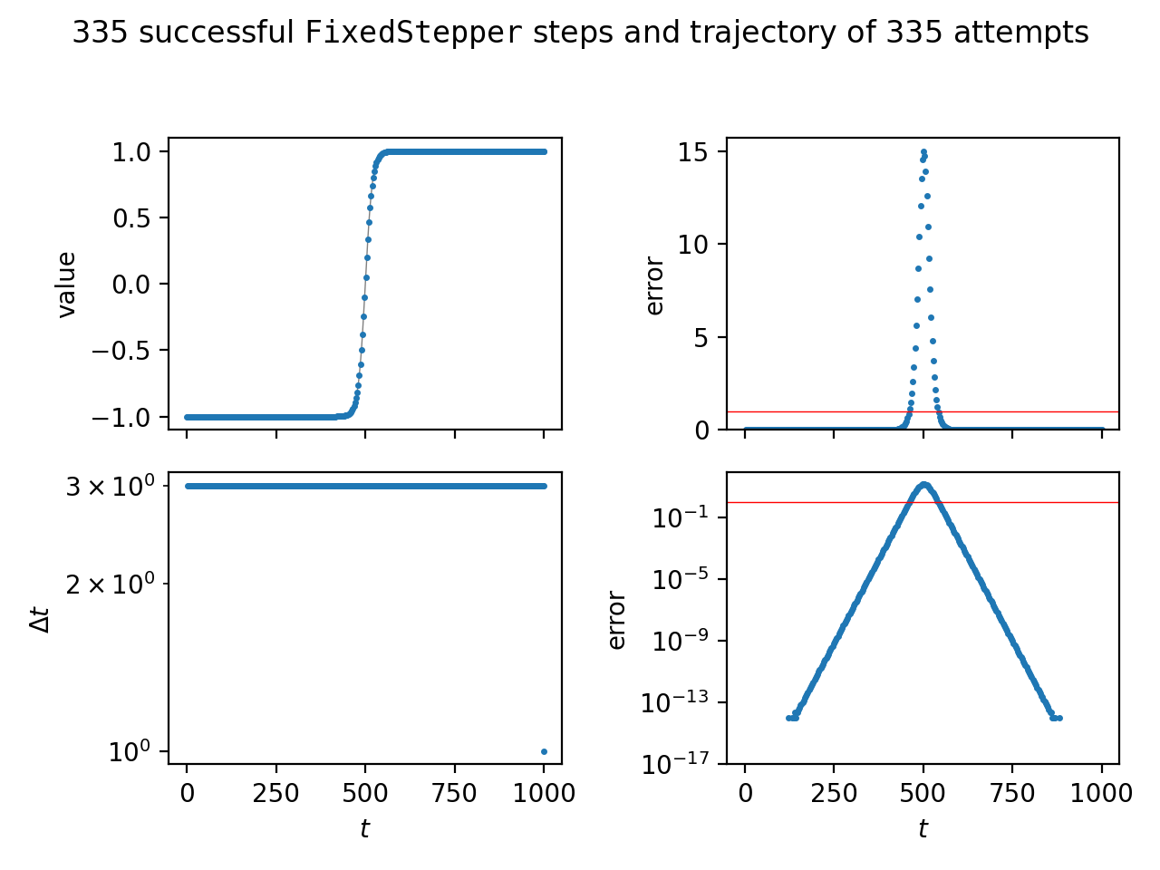 As this stepper doesn’t use the error, we don’t expect the post hoc error to satisfy the tolerance.
